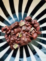 My Rocky Road is crafted with indulgence and texture in mind. A rich dark chocolate base is layered with crunchy biscuits, airy marshmallows, and chewy turkish delight. Each bar is finished with beautiful toppings and a touch of Maldon sea salt.